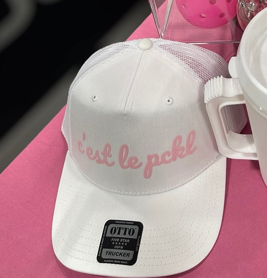 c'est le pckl Pickleball Trucker Hat | White + Light Pink