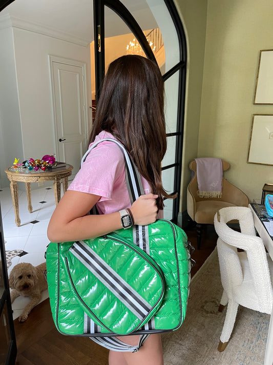 "The OG" Pickleball Puffer Tote | Green + Black Stripe