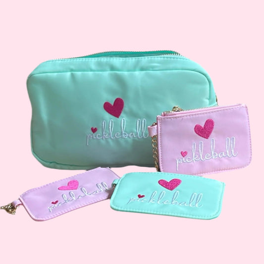 GIFT BUNDLE! Pickleball Nylon Zip Mint Green Pouch + Pink Coin Purse