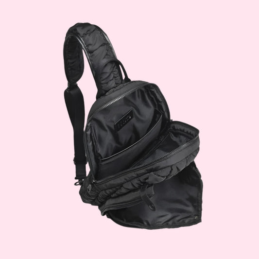 Quilted Puffer Pickleball Sling Bag | Black