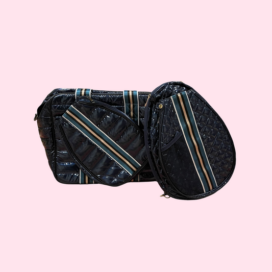 Black Pickleball Bag with Crossbody Strap + Paddle Storage