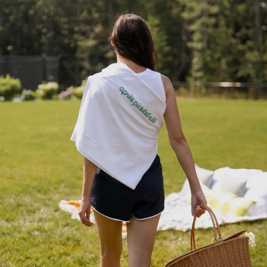 “apres pickleball” Embroidered Sweatshirt | White + Green