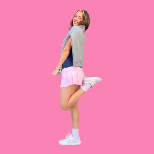 Elastic Waistband Pleated Athletic Skort | Navy Blue