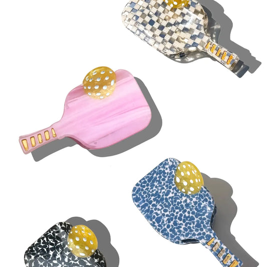 Pickleball Paddle Hair Claw | Stripe + Check