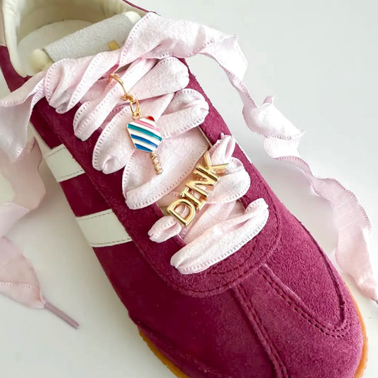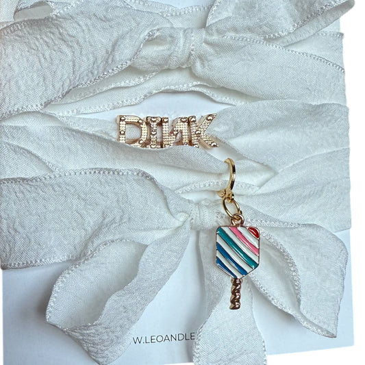Shoe Charm “DINK” Set | pink ribbons + multi color arched paddle design