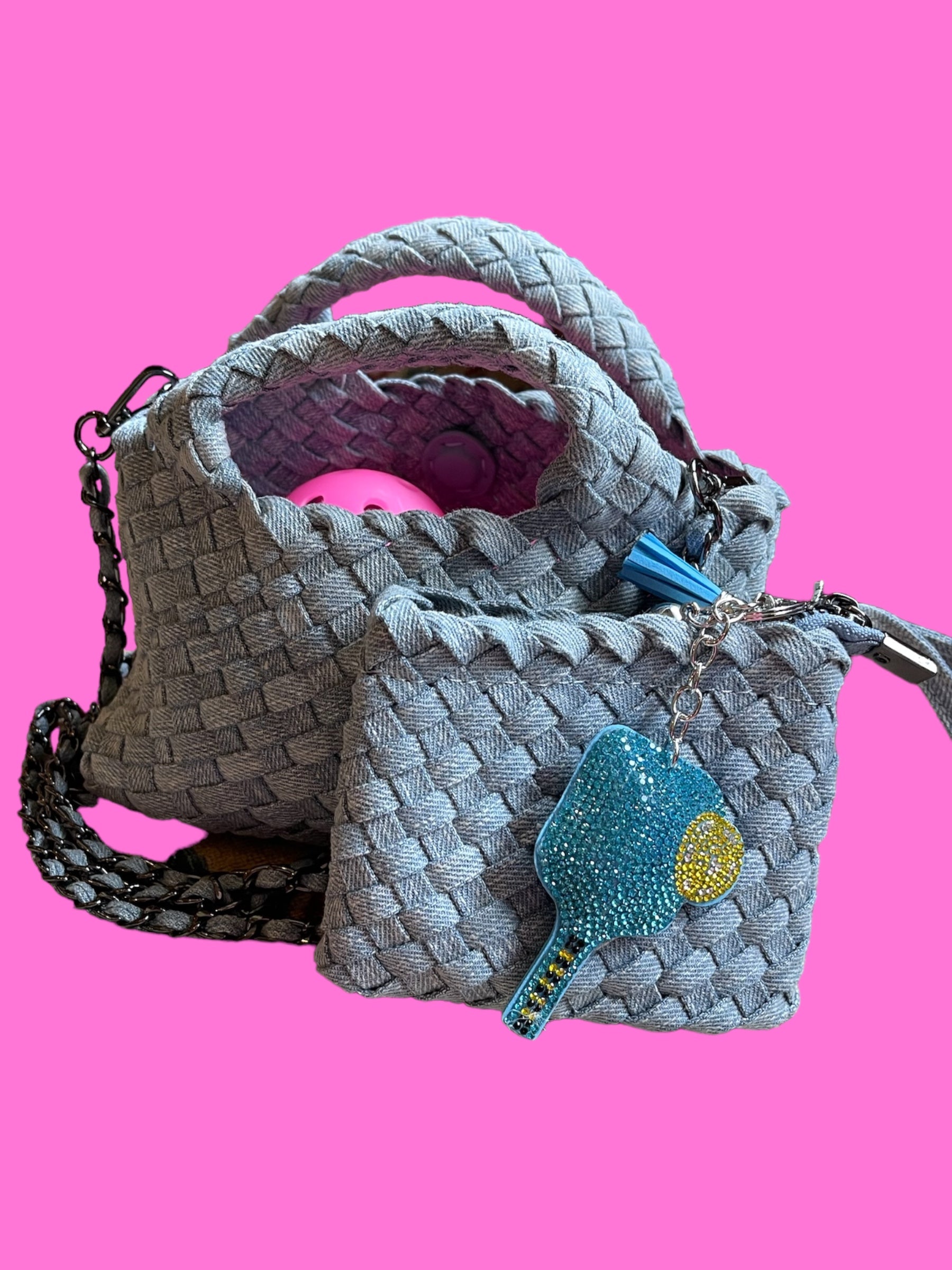 CUTE and stylish mini denim tote + coin purse + crossbody chain!